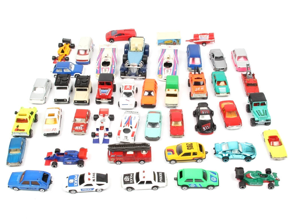 on y retrouve les marques : MAJORETTE (principalement) & SOLIDO avec petits manques & parties cassées - quelques exemplaires avec petites transformations & parties repeintes