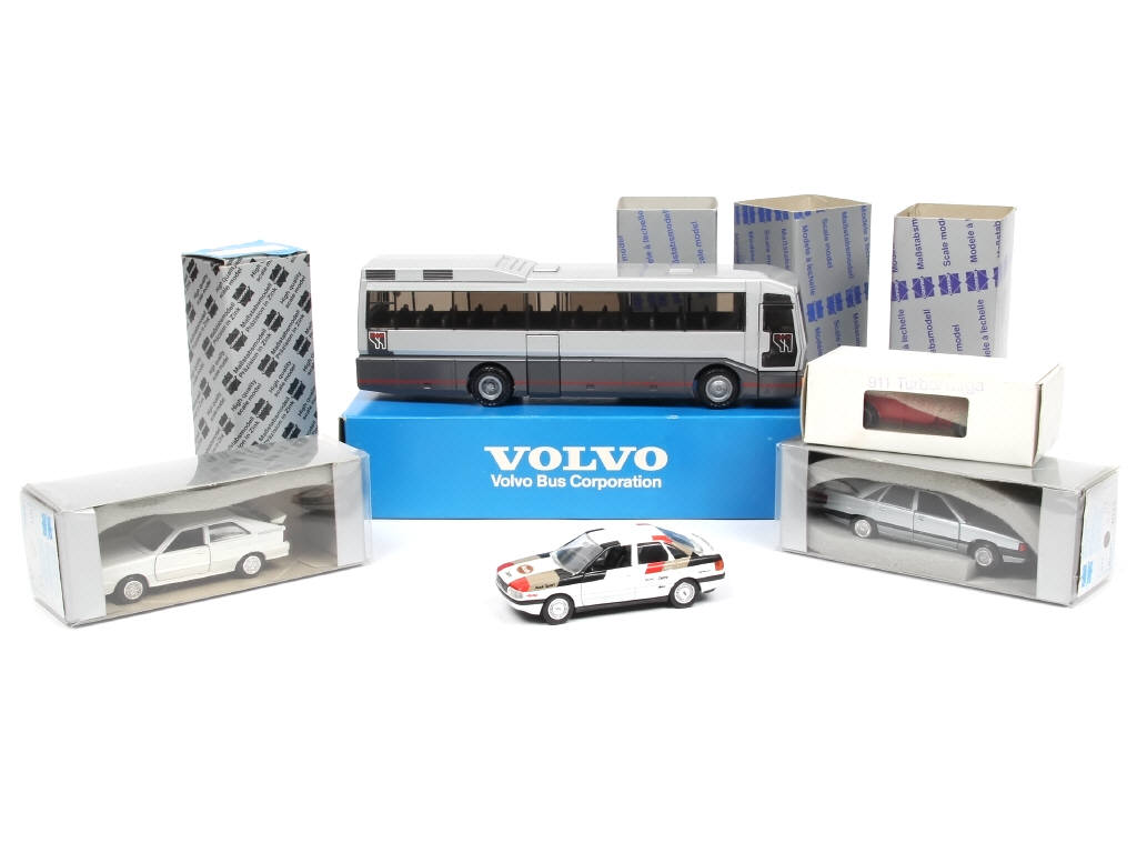 comprend les références : 1014, 1020, 1021 & 1022 - on y joint une PORSCHE 911 TARGA & un bus VOLVO B10M de la marque NZG