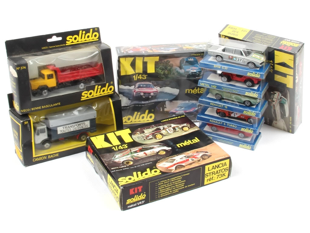 miniatures reproduisant notamment les modèles : LANCIA (possibilité de manques), BMW, IVECO & RENAULT - 3 exemplaires 'KIT' (à monter, un exemplaire déjà assemblé) - les boîtes sont en états de 'a' à 'c'
