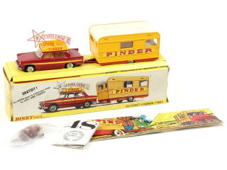 DINKY TOYS (FRANCE) 882 PEUGEOT 404 & Caravane 'PINDER' jaune, rouge & blanc