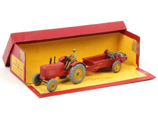 DINKY TOYS (FRANCE) 27AC Tracteur MASSEY HARRIS avec épandeur d'engrais rouge & jaune