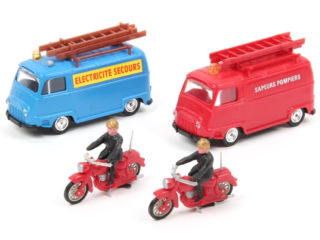 MINIALUXE (FRANCE) Ensemble de 2 RENAULT ESTAFETTE & 2 motos de pompiers