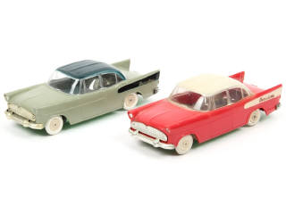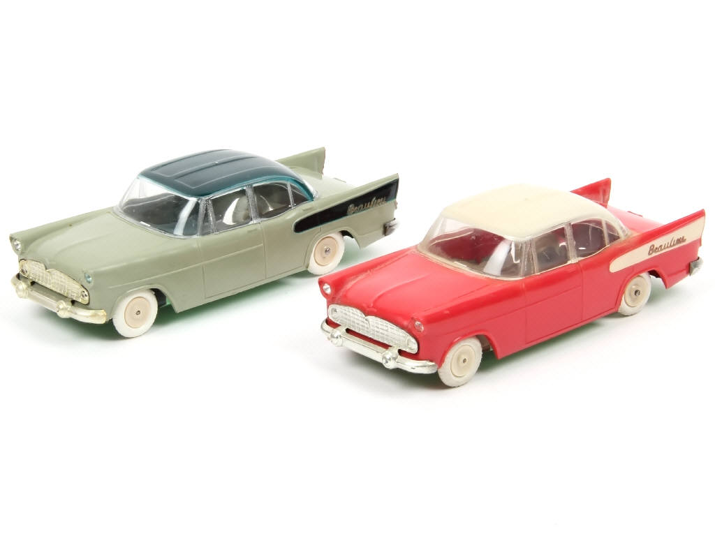 échelle 1/32ème - avec planchers en tôle (inscription sur l'un) - avec moteurs à frictions (roues avant bloquées) - quelques déformations (un coffre désolidarisé) & frottements plus ou moins importants par endroits