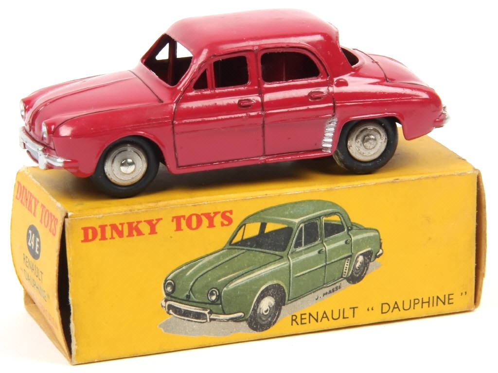 DINKY TOYS (FRANCE) 24E RENAULT DAUPHINE (version sans vitres & avec jantes convexes) framboise