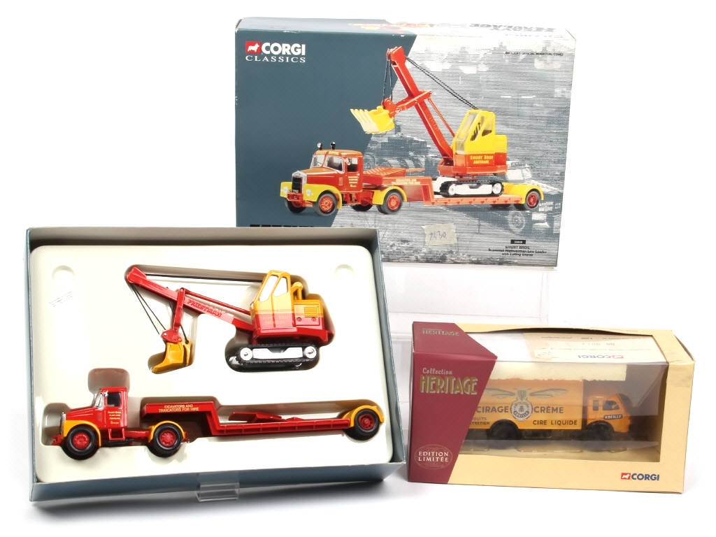 CORGI TOYS (GB) 31010 SCAMMELL HIGHWAYMAN Semi-remorque surbaissée avec excavatrice 'SHORT BROS' rouge, jaune & mastic