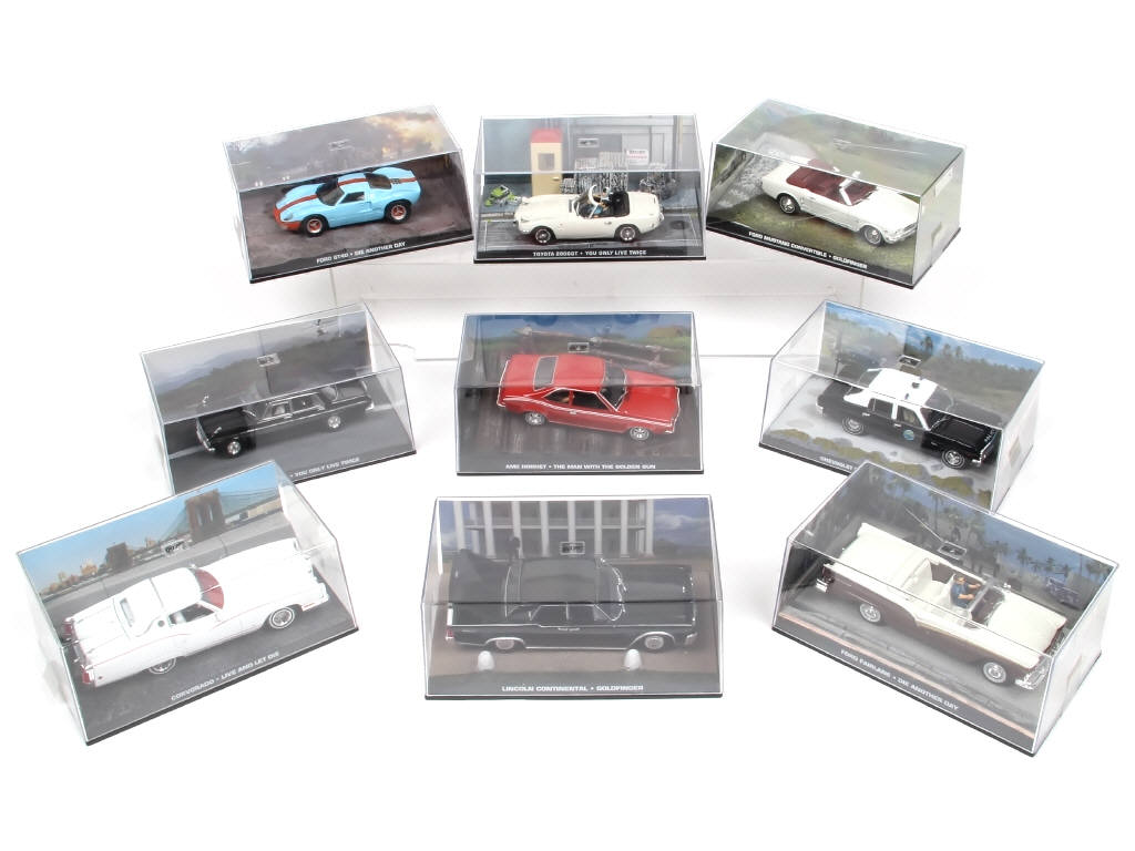 tiré des films sur James BOND - comprend notamment les modèles : AMC, LINCOLN, TOYOTA & CHEVROLET - un couvercle de boite fêlé