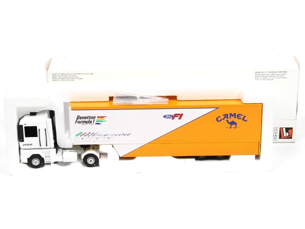 LBS (FRANCE) 5414 RENAULT AE 500 MAGNUM Semi-remorque atelier 'BENETTON FORMULA 1' blanc & jaune d'or