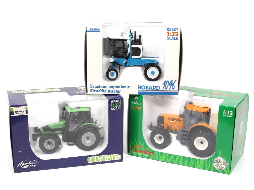 échelle 1/32ème - comprend : BOBARD enjambeur, RENAULT ALTES & DEUTZ-FAHR - on y retrouve les marques : UNIVERSAL HOBBIES & MPS