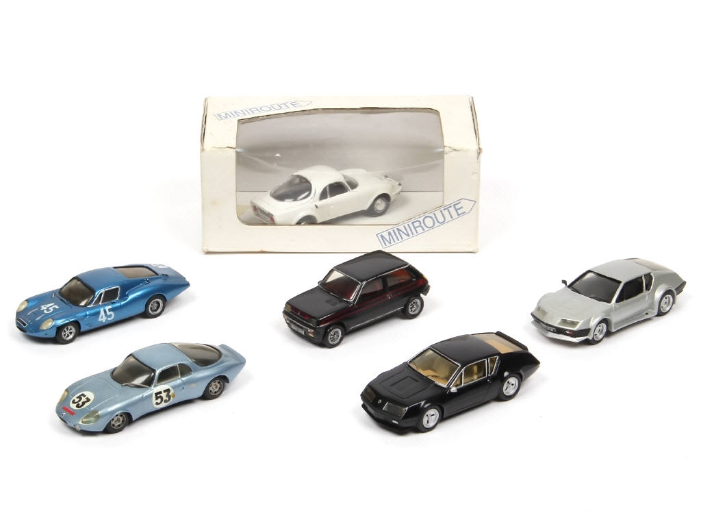 fabrication en résine & métal - comprend notamment : MATRA DJET, M64, A310, V6 AERODJET Le Mans 1963 & RENAULT 5 ALPINE - on y retrouve notamment les marques : MINIROUTE, HOSTARO, MINI 43 & JIELGE - quelques manques & parties cassées