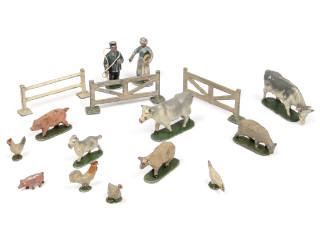 QUIRALU (FRANCE) Ensemble de 2 personnages, 11 animaux & accessoires de ferme