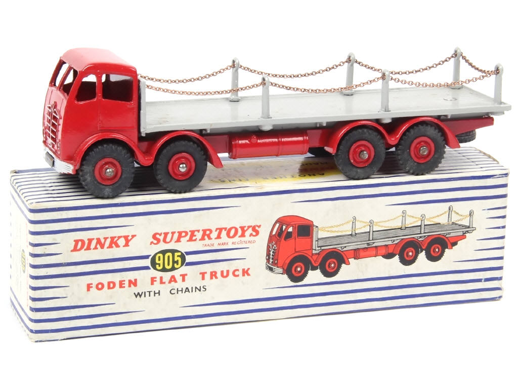DINKY TOYS (GB) 905 FODEN Plateau à chaînes rouge, plateau gris