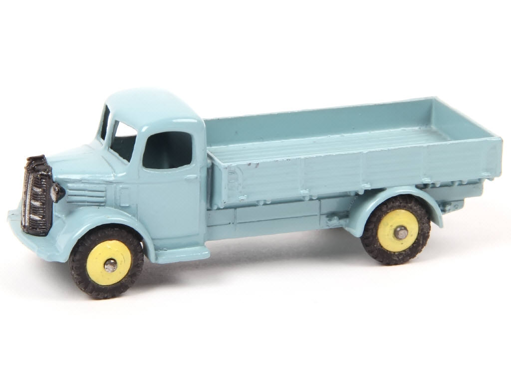 DINKY TOYS (GB) 412 AUSTIN Camion-plateau à ridelles bleu pâle, jantes jaune citron