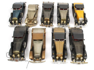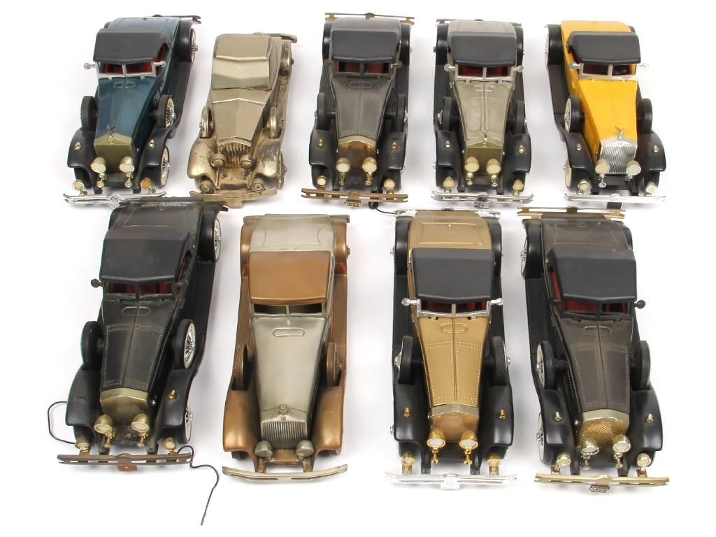 7 modèles avec moteur à piles (fabrication en plastique - non testé) - 2 modèles en métal (notamment étain pur) dont un faisant office de vide-poches - possibilité de manques & parties cassées - on y retrouve notamment la marque JADIS