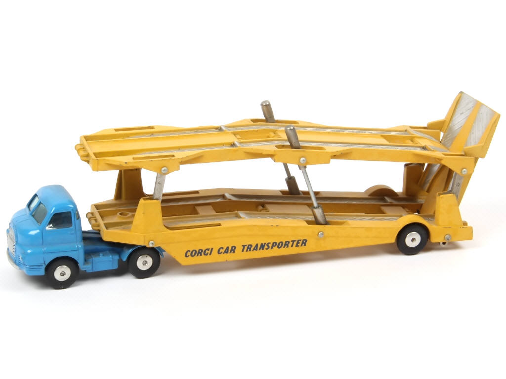 CORGI TOYS (GB) 1101 BIG BEDFORD Porte-voitures 'CORGI CAR TRANSPORTER' bleu & jaune d'or