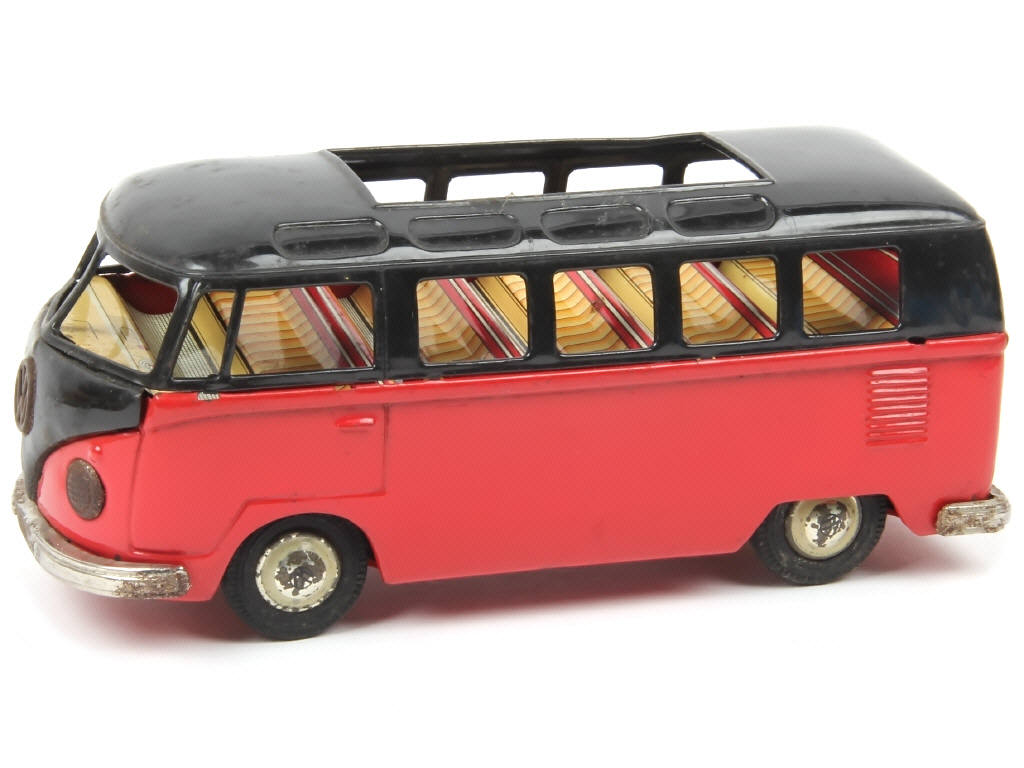 BANDAÏ (JAPON) VOLKSWAGEN COMBI Minibus en tôle littographiée rouge & noir