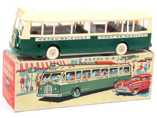'HÔTEL DE VILLE - PONT DE NEUILLY' - avec moteur à clef (fonctionne) - manque une fixation d'un battant de portière - carrosserie (encrassée) & vitrage déformés - étiquettes collées avec annotations sur la boîte