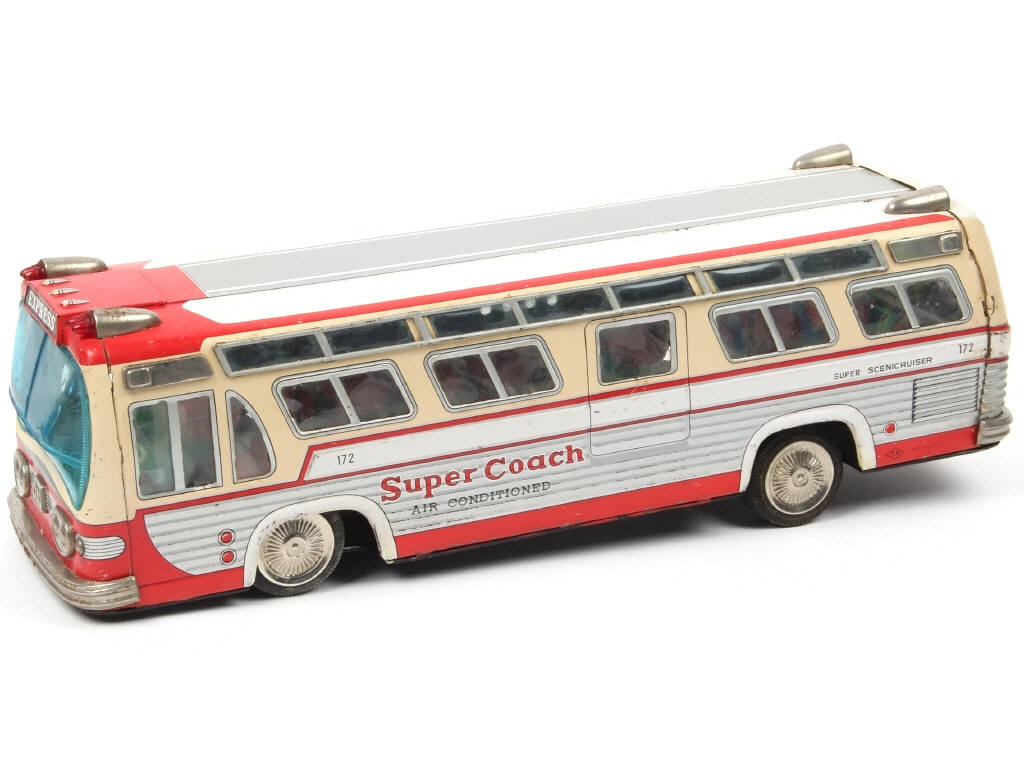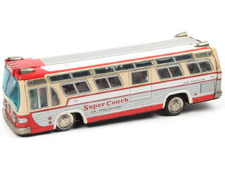 NOMURA (JAPON) GM Autocar en tôle lithographiée rouge, gris & crème