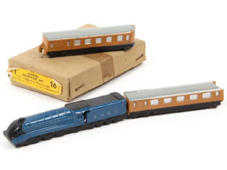 DINKY TOYS (GB) 16 Coffret de train voyageurs 'EXPRESS' bleu, noir, ocre & gris clair