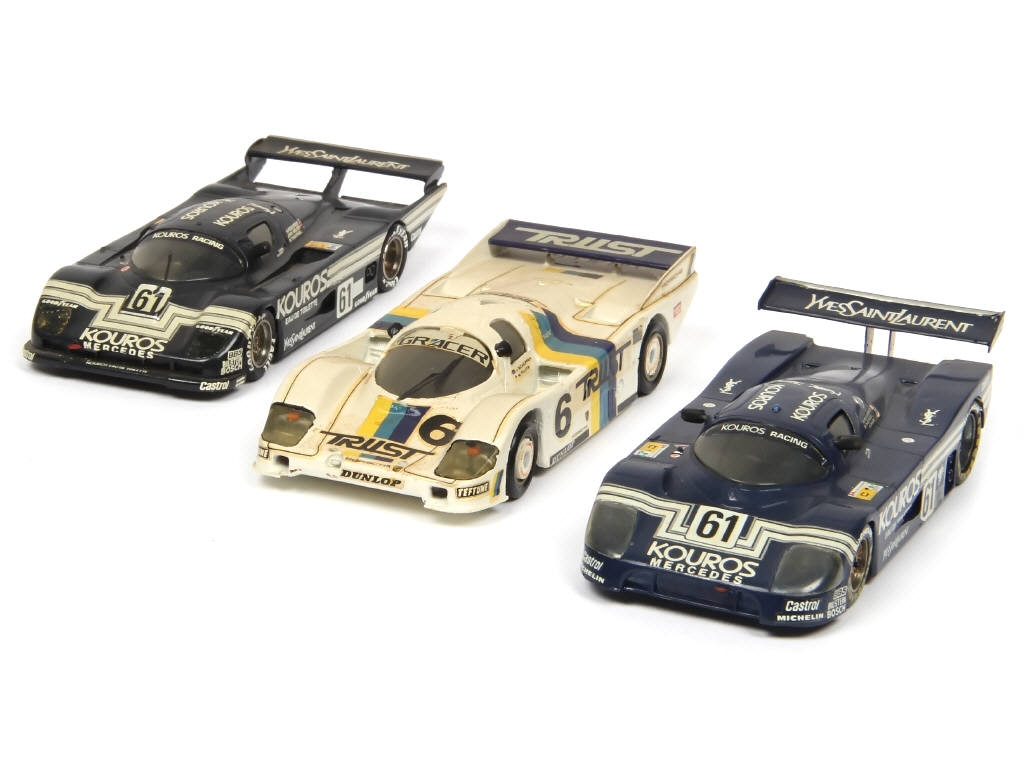 comprend : MERCEDES KOUROS (dont une avec rétroviseurs manquants) & PORSCHE 956 - carrosseries légèrement encrassées