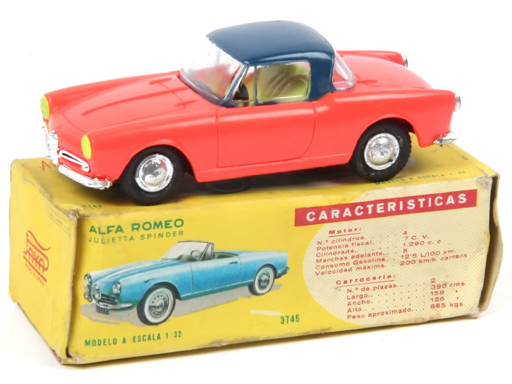PAYA (ESPAGNE) 3747 ALFA ROMEO GIULIETTA SPIDER orange fluo, toit bleu canard