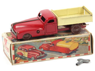 longueur : 14,5 cm - moteur à clé (fonctionne, avec clé) - parties chromées ternies - boîte légèrement déformée