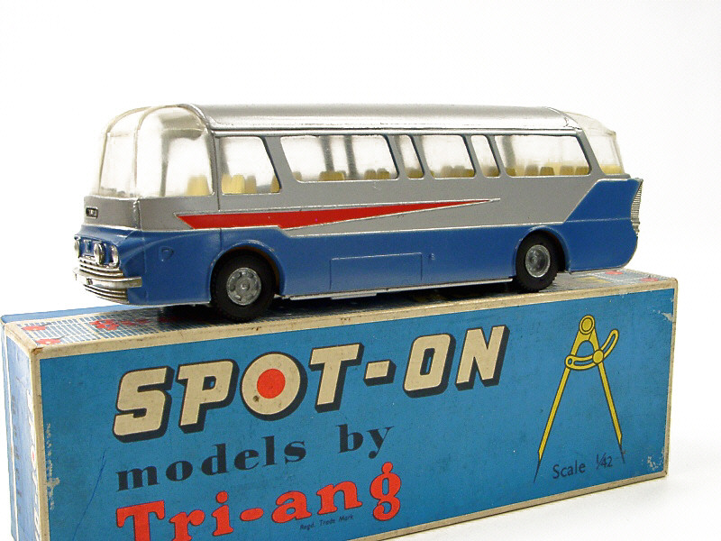 SPOT-ON (GB) 156 MULLINER Autocar de luxe 'TRI-ANG TOURS' argent, bleu, filets rouges