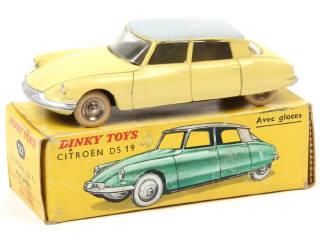 DINKY TOYS (FRANCE) 522 CITROËN DS 19 (version avec vitres & jantes concaves) jaune paille, toit gris clair