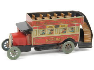 PAYA (ESPAGNE) Autobus à impérial en tôle lithographiée 'GENERAL' brique, noir & jaune
