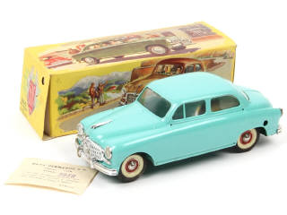 longueur : 23,5 cm - moteur à friction (à revoir, éléments cassés) - carrosserie légèrement encrassée & tachée - sans baguette chromée - avec bon de contrôle - boîte avec quelques accrocs (légèrement tachée)