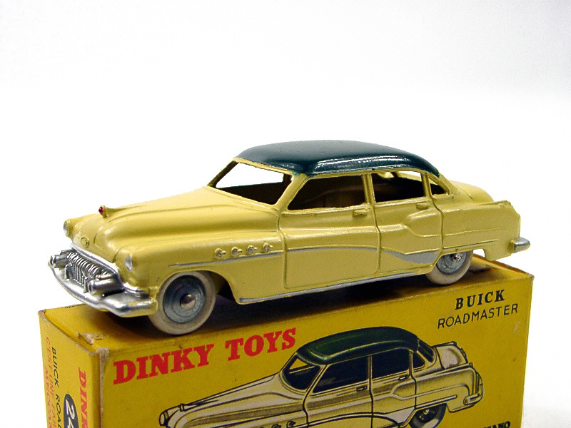 DINKY TOYS (FRANCE) 24V BUICK ROADMASTER (version avec intérieur de toit lisse & jantes zamac brut) jaune paille, toit vert foncé