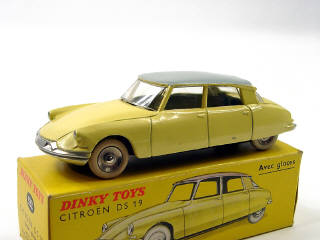 DINKY TOYS (FRANCE) 522 CITROËN DS 19 (version avec vitres & jantes concaves) jaune paille, toit gris clair
