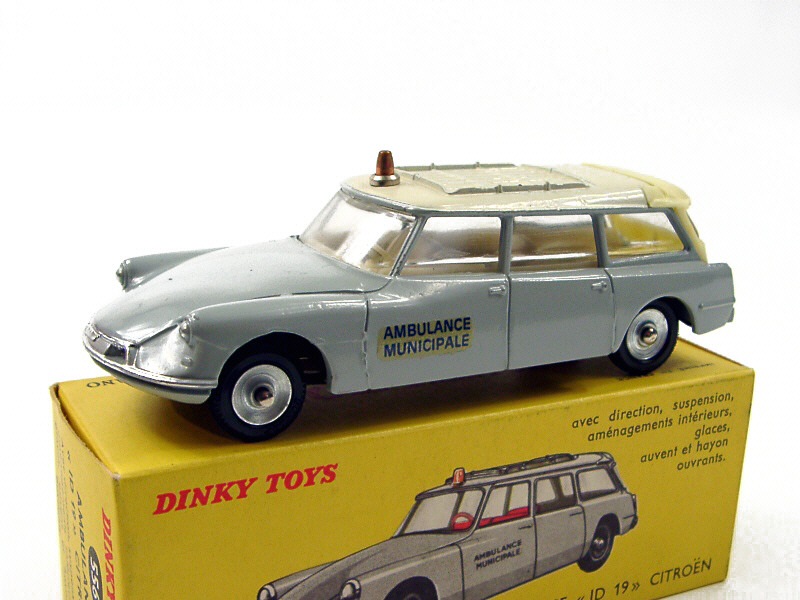 DINKY TOYS (FRANCE) 556 CITROËN ID 19 Break 'AMBULANCE MUNICIPALE' (version avec décalques alignés) gris, toit crème