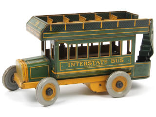 STRAUSS (USA) Autobus à impérial en tôle lithographiée 'INTERSTATE BUS' vert & jaune