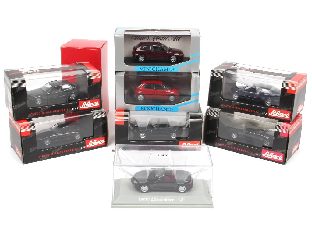 comprend les modèles : BMW (7 exemplaires) & AUDI - on y retrouve les marques : SCHUCO & MINICHAMPS - quelques boites avec accrocs