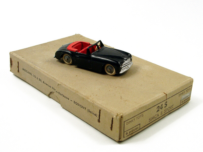 DINKY TOYS (FRANCE) 24S SIMCA 8 SPORT (version avec pare-brise mince & jantes zamac brut) noir, intérieur rouge