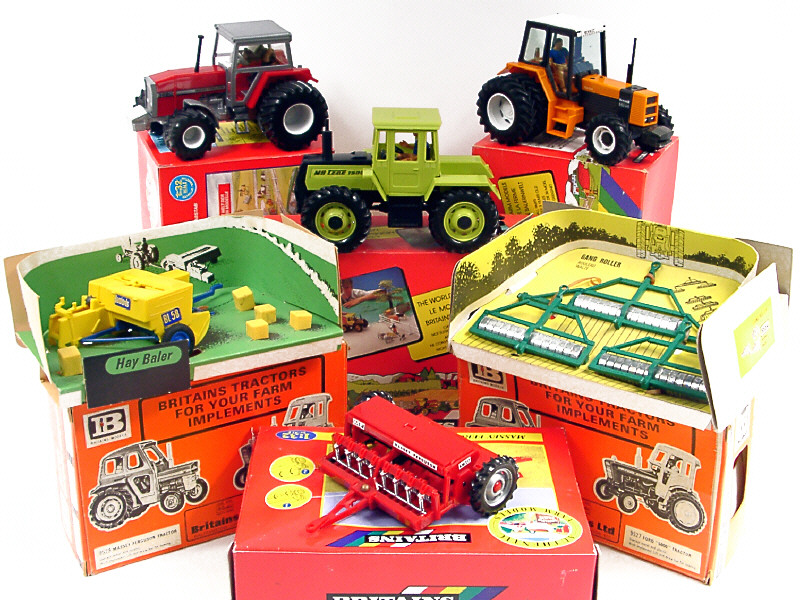 BRITAINS (GB) Ensemble de 3 tracteurs & 3 machines agricoles