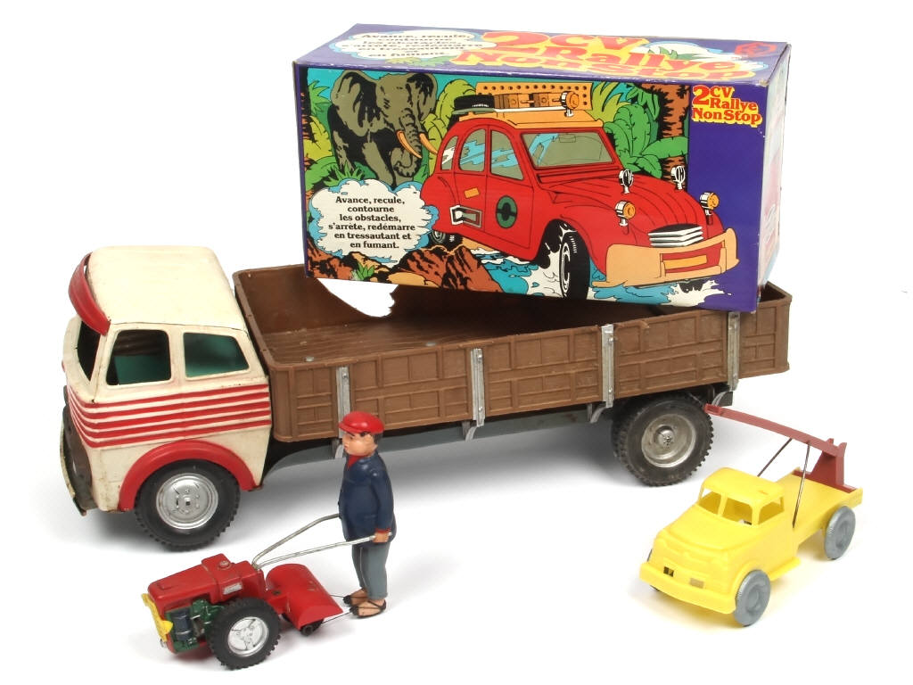 différentes compositions - un moteur à clef (fonctionne) & un moteur à piles (non testé - avec boite en état 'b' - avec cales) - on y retrouve notamment la marque VERCOR - avec manques, parties cassées & traces d'oxydation