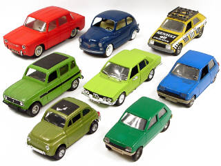 états de 'B' à 'F' - comprend : 2 RENAULT 5, une RENAULT 14, une FIAT 600, une FIAT 500, une RENAULT 8, une RENAULT 4 & une BMW 525 - on y retrouve les marques : POLISTIL, BBURAGO, MARTOYS & PAYA