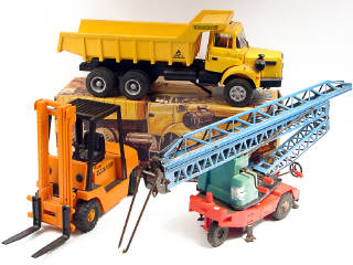 longueur 31 cm - avec direction par le volant - petits manques sur la base de l'élévateur - avec photo du véritable modèle sous le châssis