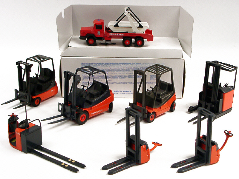 DIVERS (ALLEMAGNE) Ensemble de 7 chariots élévateurs 'FENWICK' rouge orangé & gris