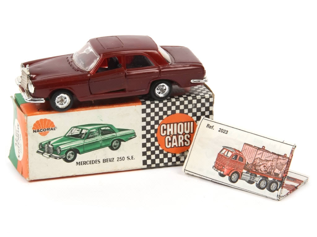 série 'CHIQUI CARS' - avec dépliant présentant les différents modèles de la marque - carrosserie très légèrement déformée (une portière déformée) - jantes légèrement fondues