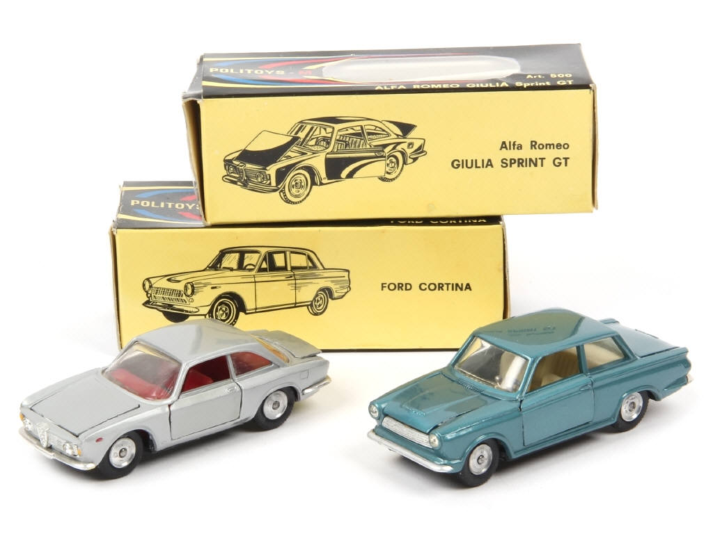 comprend : ALFA ROMEO GIULIA SPRINT GT (défaut de fermeture de la malle arrière) & FORD CORTINA - les boites sont en état 'b'