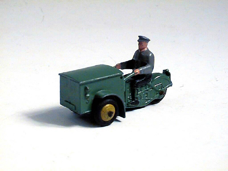 DINKY TOYS (FRANCE) 14A Triporteur (dernière version avec roues à pneus 'M') vert, jantes jaunes & pilote à chemise grise
