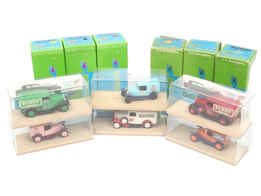 comprend les modèles : CITROEN (avec notamment les publicités 'BYRRH', 'GILETTE', 'LA VACHE QUI RIT' & 'BEBE CADUM') & DELAGE - quelques légers frottements & parties déformées sur certains exemplaires - 6 modèles avec suremballage dont certains en état 'c'