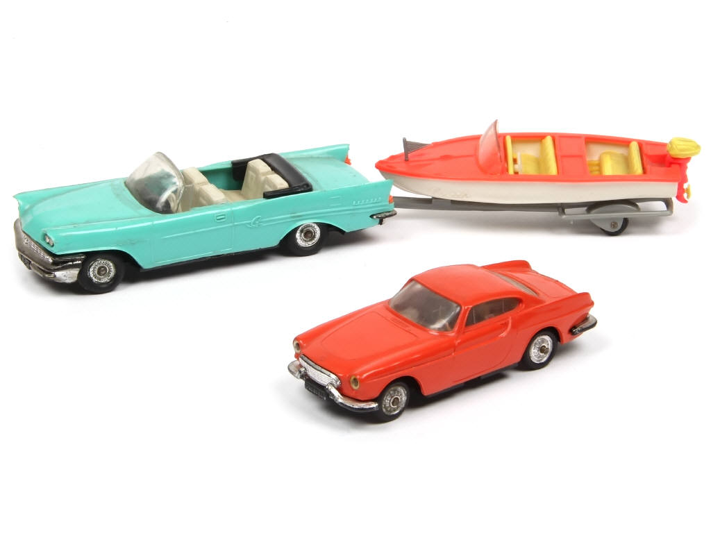 carrosseries plus ou moins encrassées & déformées - pare-chocs avec manques de pellicule chromée - on y joint une VOLVO P1800 de la marque