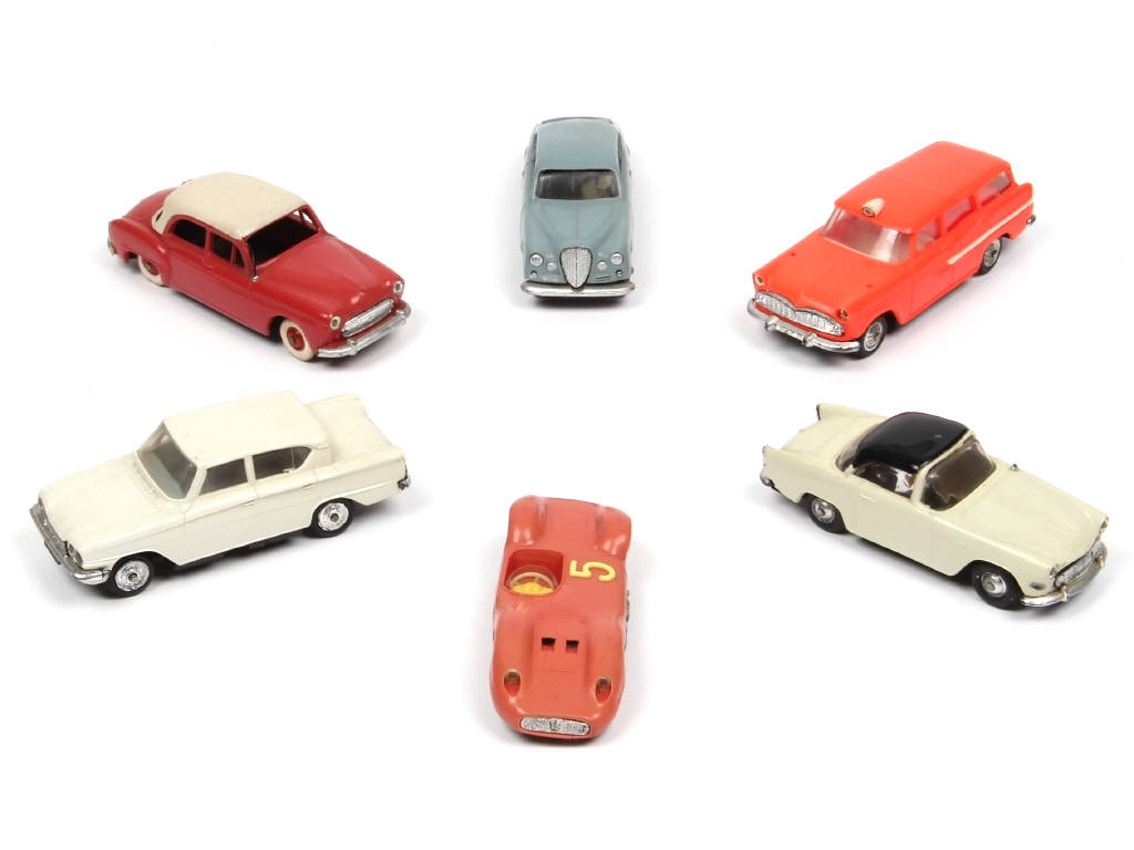 comprend notamment : LANCIA AURELIA, RENAULT FREGATE, SIMCA MARLY, FORD CONSUL & MASERATI SPORT 200/SI - quelques petites déformations & certaines carrosseries légèrement encrassées - avec manques & parties cassées sur certains modèles