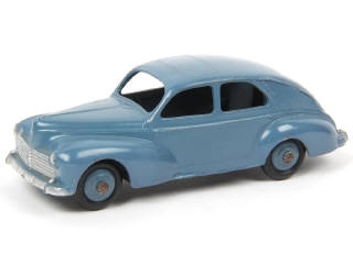 DINKY TOYS (FRANCE) 24R PEUGEOT 203 Petite lunette arrière (version avec intérieur de toit quadrillé & ailes lisses) bleu pétrole, jantes identiques