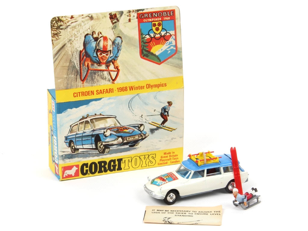 CORGI TOYS (GB) 499 CITROËN ID 19 'GRENOBLE OLYMPIADE 1968' blanc & bleu