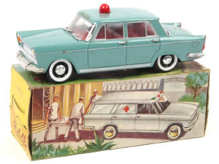 longueur : 23 cm - avec moteur à friction (fonctionne) & gyrophare électrique (non testé) - carrosserie très légèrement encrassée