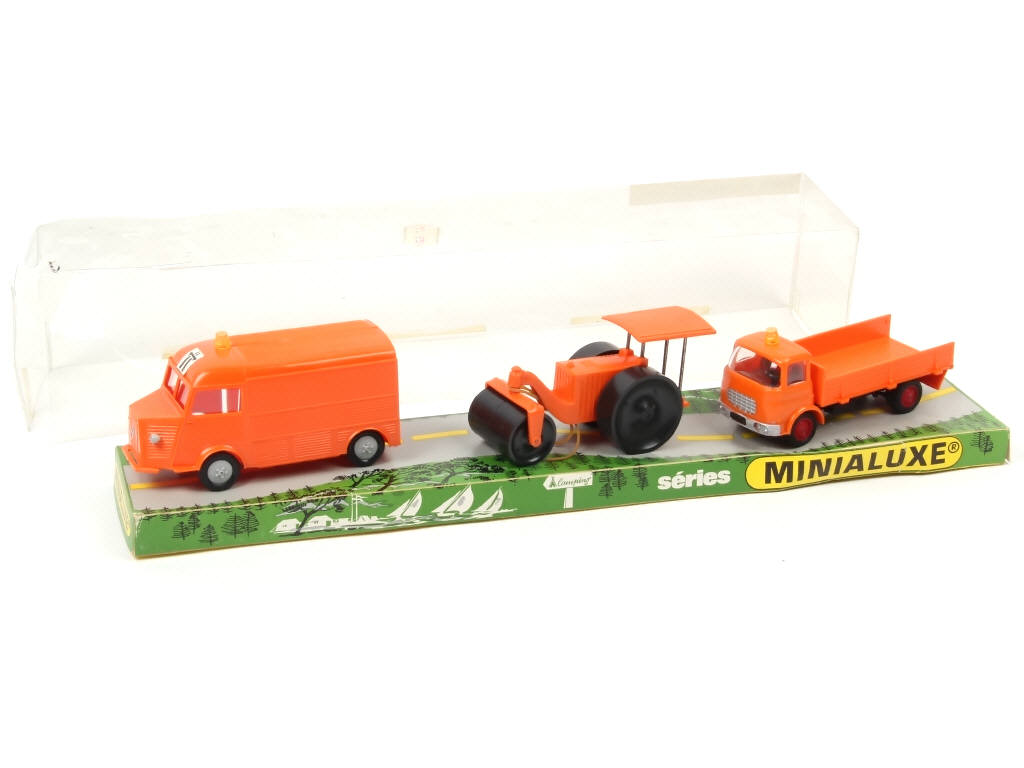 grandes échelles : contient : CITROËN 1200kg, rouleau compresseur (petites traces d'oxydation sur les barres) & BERLIET GAK plateau à ridelles
